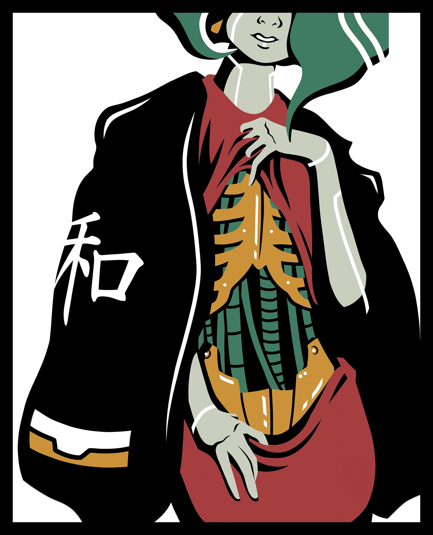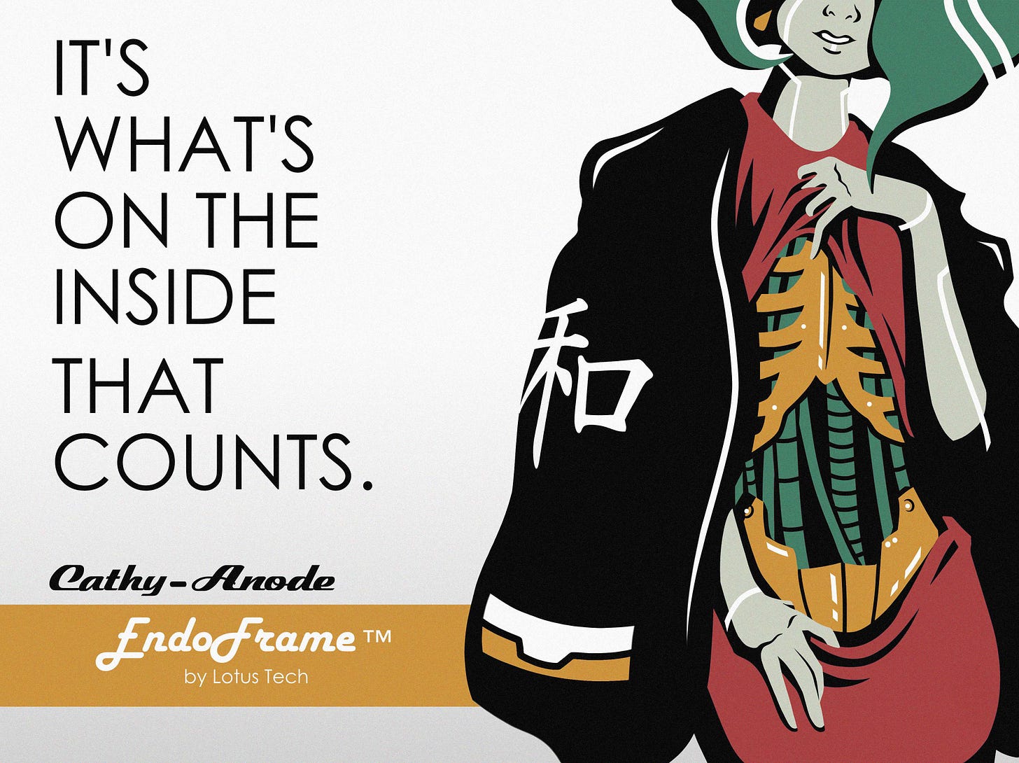 Panel gaps on her limbs are believed to be recent tattoos to go deeper into transhuman aesthetic.
